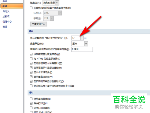 4. 第四步在右侧窗口中,根据下图箭头所指,按照需求设置【最(jìn)使用的文档】数目。
