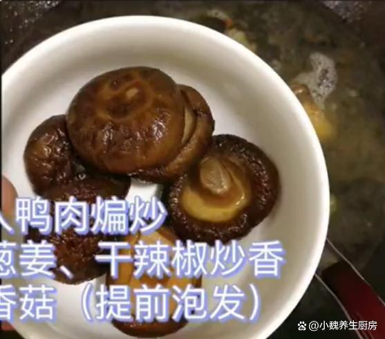 详细制作过程:第一步:提前选购好土鸭,陈皮和香菇等食材,把生姜去皮洗干净,切成厚度相同的片子,香葱去掉葱须,洗净打成葱结备用。第二步:把干香菇的根部去掉,香菇都放在碗中,加上适量温开水,浸泡半个小时,冲洗掉表面的泥沙和脏东西,洗净控干表面的水分。第三步:把买回来的老鸭宰杀(也可以放商贩处理,自己去掉鸭毛非常复杂),然后用火烤一会儿,处理干净。 第四步:提前把鸭肉剁成小块,用冷水浸泡出血水,将鸭肉倒入汤锅里,加上适量冷水,放入葱姜和料酒,把鸭肉炖煮几分钟,去掉腥味,冲洗浮沫即可。 第五步:把锅底提前烧热,加上食用油少许,倒入焯水好的鸭肉,用锅铲快速煸炒至变色,加上一勺料酒去腥。 (www.wS46.com) 第六步:加上葱段和姜丝,放入一些干辣椒煸炒出香味,然后放入香菇和陈皮,加上适量开水煮沸,让汤汁煮至变色。