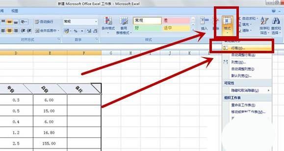 【五】为了使文字更加美观,调整完字体倾斜角度后,还需要调整一下单元格的行高以及列宽。单击工具栏右上角“格式”,选择“行高”。