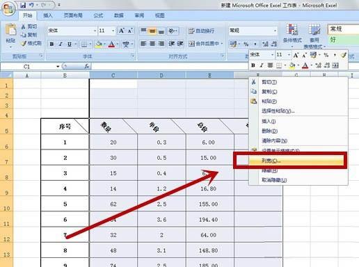 【七】选择相应的列,并单击右键,选择“列宽”。