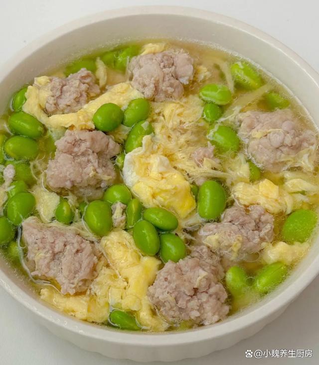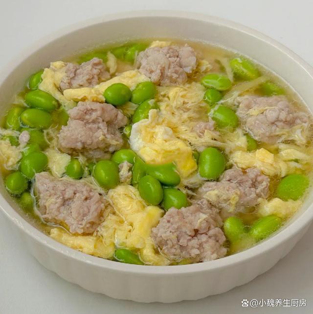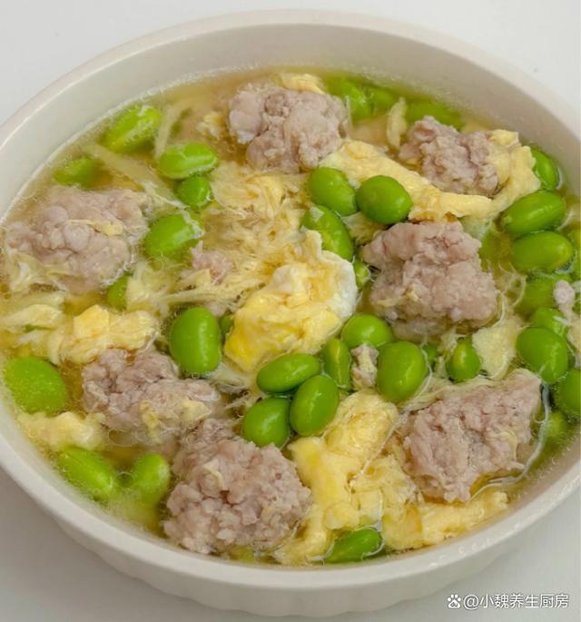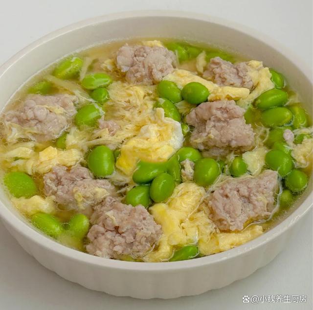 一转眼就到了6月的尾声,七月快要来到了,夏季已经到了中期,三伏天也快要来临了,这个时候特别炎热,汗流浃背,让人身体特别乏力,影响我们的食欲,让很多疾病钻空子。夏季的皮肤会被晒伤,皮肤出现严重缺水,这个时候要多吃应季蔬果,可以尝尝这款汤品——毛豆鸡蛋肉丸汤,汤色非常好看,鲜美极了。夏季,宁可少喝鸡汤,也要多喝这汤,营养易消化,顺利过完三伏天。  【毛豆鸡蛋肉丸汤的制作技巧】 准备一些食材:选购新鲜青皮毛豆200克左右(毛豆又叫青豆,是夏季最受欢迎的豆类,分为很多品种,要挑选颗粒非常饱满,色泽嫩绿的毛豆,毛豆的维生素和钾元素高,荤素都能搭配,炒食或煮汤也都不错),清水少许,选购新鲜猪肉400克(建议要肥瘦相间,肉质一定要非常鲜嫩,是做成肉丸子的首选),少许红薯淀粉,少许原味酱油,食用油少许,土鸡蛋几个,几片生姜,香葱若干根,半勺白醋,食盐和鸡精少许,胡椒粉少许,其他调味品。 详细制作顺序:第一步:提前选购好毛豆,鸡蛋和猪肉等食材,先把生姜切成细丝,香葱都去掉葱须,切成若干葱花,备用。第二步:将新鲜毛豆剥掉壳,搓洗掉白色的物质,反复清洗干净,也可以用热水焯烫,用凉水冲洗干净,控干水分。第三步:将猪肉的肥肉和猪皮去掉,反复清洗干净,切成若干小块,剁碎成猪肉馅,全部放在容器里。