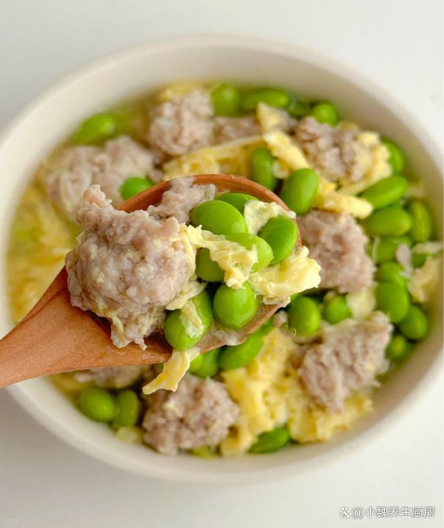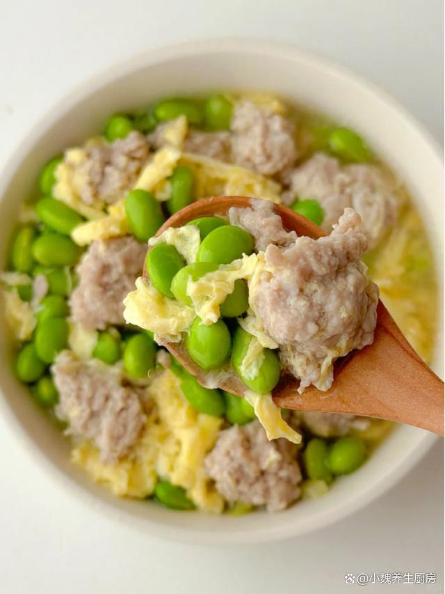第四步:猪肉末用葱姜和料酒去腥,加上少许原味酱油,加上半个鸡蛋清,加上少许红薯淀粉,用手顺时针搅拌,让猪肉馅充分上劲,静置20分钟,让猪肉馅更加Q弹。 第五步:锅底调入少许食用油,加上葱白和姜丝炒香,倒入毛豆煸炒一会儿,倒入适量开水煮一会儿。 来源: www.ws46.com 第六步:调到中小火炖煮,用手搓成肉丸子,将猪肉丸子煮至熟透,等到肉丸子浮上来,淋入调好的鸡蛋液,不要用锅铲搅动。 第七步:让鸡蛋煮至定型,加上胡椒粉和食盐等佐料,最后撒上一些葱花,这道毛豆鸡蛋肉丸汤就制作完成了。 毛豆鸡蛋肉丸汤的制作小贴士:首先,关于毛豆的处理。毛豆煮熟后的冷却过程不仅保留了其翠绿的色泽,还能使毛豆的口感更加脆嫩。另外,毛豆煮熟后的冷却过程也有助于去除部分豆腥味,使得汤品更加清香可口。其次,肉丸的制作是这道汤品的关键。在搅拌肉馅时,可以适量加入一些料酒和生姜末,这样既能去腥增香,又能让肉丸更加鲜嫩多汁。此外,肉丸的大小要适中,过大会影响口感,过小则容易煮散。 在烹饪过程中,火候的掌握也至关重要。在煮毛豆和鸡蛋时,要用中小火慢慢煮熟,避免煮得过烂影响口感。而在煮肉丸时,则需要大火快煮,以确保肉丸能够快速熟透,保持其鲜嫩的口感。最后,调味品的使用也是关键。在加盐时,要适量控制,以免过咸影响口感。此外,可以根据个人口味适量加入一些胡椒粉、鸡精等调味品,提升汤品的口感层次。 总之,制作毛豆鸡蛋肉丸汤需要注意多个环节,从毛豆的处理到肉丸的制作,再到烹饪过程中的火候掌握和调味品的使用,都需要我们细心操作。只有这样,才能制作出一道色香味俱佳的毛豆鸡蛋肉丸汤。网友们,你们是否喝过这款毛豆鸡蛋肉丸汤呢?(文中的配图都出自网络)