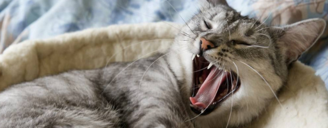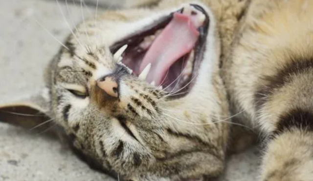 正常生理现象:猫咪在睡醒或有困意时会出现打哈欠的情况,这时猫咪会张大嘴然后再合上,属于猫咪正常的生理行为,主人无需在意。