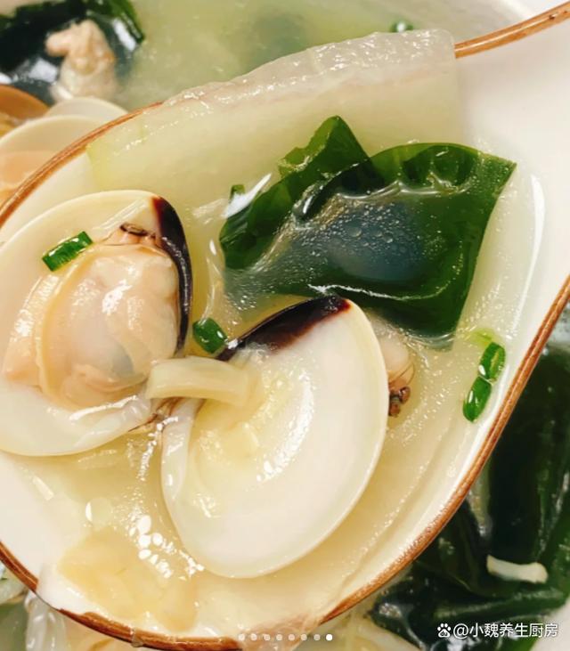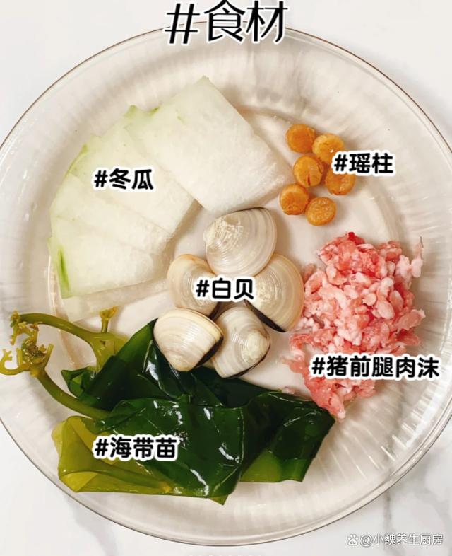 转眼之间,一年已经过完一半,夏季已经到了中期,盛夏高温,酷暑难耐,最近各地都呈现高温趋势,很多地方都呈现橙色预警,虽然这几天有一些降温,但是温度并没有降下来,据说到了七月会越来越热。由于天气太炎热,出汗会非常多,人容易乏力,精气神很差,影响我们正常的工作和生活。想要顺利度过夏天,入伏前要多喝鲜美的汤品,比如说这款冬瓜白贝海带汤,冬瓜是夏季特别便宜的蔬菜,搭配猪肉,海带,冬瓜和白贝煮一锅,让汤品更加鲜美,适合夏天来食用。有没有掌握这道冬瓜白贝海带汤的正确做法呢?跟着小编学起来吧。七月多喝汤,伏天更舒坦!建议多喝这汤,补足营养,顺利度过伏天、  【冬瓜白贝海带汤的制作技巧】 选购一些食材:选购一大块老冬瓜(冬瓜是一种低脂的瓜类,瓜肉非常清甜爽口,夏季吃正当时,烹饪方法很多余,我们家喜欢吃冬瓜汤),瑶柱40克左右,温水少许,白贝150克左右(白贝是一种常见的海鲜,价格也不贵,肉质肥美,营养价值出色,可以搭配冬瓜来煮汤,让汤品鲜美倍增),生姜一大块,冷水少许,若干根香葱,选购新鲜前腿肉100克左右,食盐若干,新鲜海带35克左右,少许料酒,鸡精一勺,生抽一勺,生姜若干片,其他调味品。