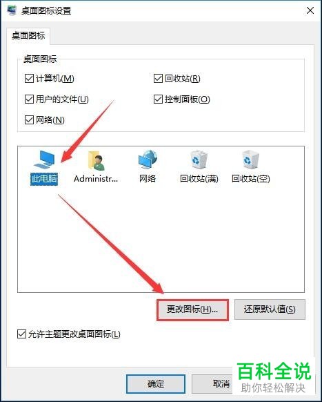 4. 打开桌面图标设置窗口后,点击我们要更改的图标,然后点击“更改图标”。