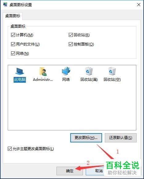 6. 返回桌面图标设置窗口,依次点击“应用”-“确定”。