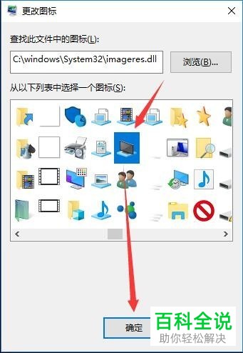 5. 打开更改图标窗口,选择一个自己喜欢的图标,然后点击“确定”。
