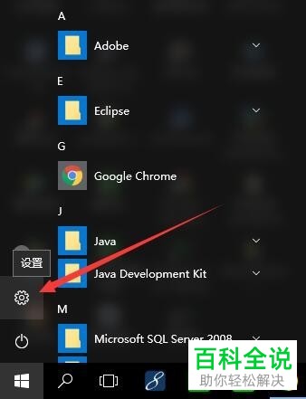 方法二:1. 打开桌面左下角的开始菜单,在弹出菜单中点击左侧列的设置图标。