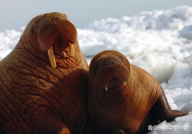 初生的貘幼仔的体重约为8-10千克,全身呈深褐色与黄色斑点条纹,在阳光下的丛林中形成了很好的保护色。这些斑点逐渐消失,在6个月后已经完全不见。幼仔出生后不久就可以随着母亲活动,不时地停下来吸奶,每天的体重增加大约0.5千克左右。当它们达到4-5岁时,就会变得性成熟。 8、海象(11-13个月) 海象每隔三年就会产下一胎,其妊娠期通常在11-13个月之间,每胎只会生下一只幼仔。初生时,幼仔的体长约为1-1.2米,体重大约为40-50千克。它们身上覆盖着稀疏的黄褐色短毛,但皮下脂肪层并不厚。尽管如此,海象乳中的脂肪含量极高,高达45%,但糖分却非常少。由于这种营养特点,幼仔的哺乳期能够持续长达2年之久。