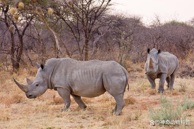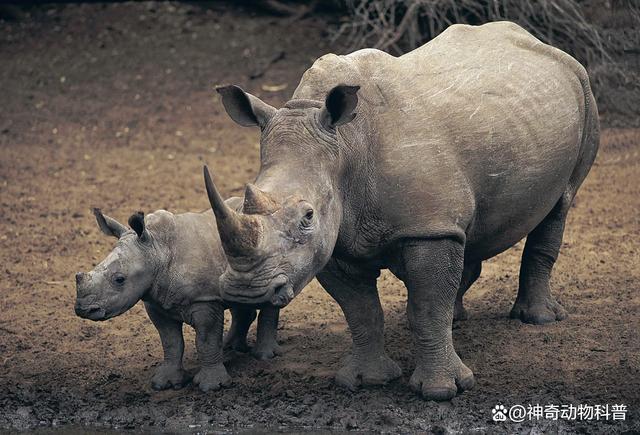 比起那些已濒临灭绝的大型须鲸,抹香鲸的处境似乎好上许多,现今世上估计仍有十多万头抹香鲸,其食物来源并非人类渔业的主要目标,而它们位于较深海域的栖地在污染与人类破坏上也比较轻微。 4、犀牛(15-18个月) 犀牛作为第二大陆生物,在繁殖季节中,一对犀牛会共同度过四个月的生活。母犀牛每隔4-5年才能产下一只幼仔,而且每次妊娠期需要15-18个月。新出生的幼犀牛需要约半小时的时间才能站立起来,一个多小时后才开始吃奶。通常情况下,幼犀牛需要跟随母亲3年后才能独立生活。