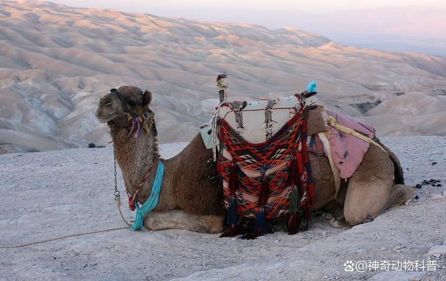 虽然成年长颈鹿体型庞大,但幼鹿却是非常脆弱的。在出生的前两周里,幼鹿通常会蜷缩在地上静静地躺着,依靠母鹿的保护生存。然而,即使得到母鹿的保护,幼鹿仍然很容易遭受狮子、豹和鬣狗等掠食者的攻击。据统计,只有大约25-50%的幼鹿能够存活到成年期。 6、骆驼(12-14个月) 骆驼素有“沙漠之舟”的美称。在文化层面上,骆驼常被作为坚忍、适应力强、任劳任怨和不畏艰险的象征,多以褒义形象出现在各类艺术作品中。在没有水源的条件下能够存活2周,而在没有食物的情况下则可以生存长达一个月。骆驼的驼峰里面贮存着脂肪,如果在荒漠中无法寻找到食物,这些脂肪会分解成身体所需的养分,以供骆驼维持生命。此外,骆驼的胃里还有许多瓶子形状的小泡泡,用来存储水分。这种特殊的生理结构使得骆驼可以在缺水的环境下存活更长时间。