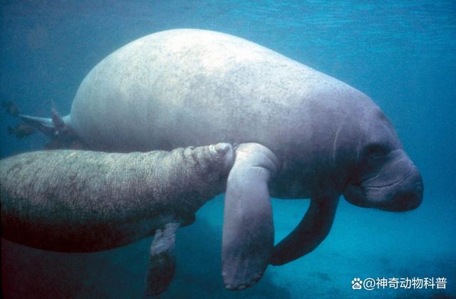 雌性海象与幼仔之间有非常强的眷恋性。当幼仔遇到危险时,雌性海象会前往保护它们,并且会攻击潜在的威胁,甚至与凶猛的北极熊进行搏斗。如果幼仔受伤,雌性海象会用前肢抱住它们,并将它们带到安全的地方。 9、海牛(11-13个月) 海牛的低新陈代谢对它们的交配行为产生了影响,虽然它们精力充沛,但相比其他哺乳动物,它们进入动情期的次数要少一些。具体而言,一头雌性海牛在动情期时会与一小群雄性海牛在一起,这些雄性中只有几头能够与它连续交配。海牛的妊娠期持续11-13个月,而出生的小海牛重量约为30千克。(www.Ws46.com)