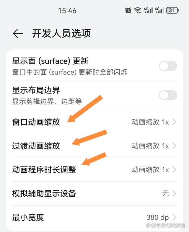 往下滑动,我们会发现“窗口动画缩放”“过渡动画缩放”“动画程序时长调整”这三个开关按钮。