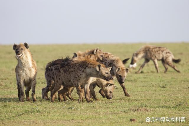 非洲象 5、鬣狗 鬣狗也是一种非常团结的动物。它们通常会组成群体进行狩猎,并且每次狩猎的距离可能高达100公里远。在狩猎过程中,有些犬只难免会受伤,这时候它们会留下来守护地盘并照料仔犬。当鬣狗群体完成狩猎并回到洞穴后,它们会吐出食物喂养其他犬只。鬣狗群体的规模很大,可以由几十只到十几只不等。每个群体都有一个强壮的雌性鬣狗作为首领。尽管鬣狗生活在群体中,但是它们还是有相当大的自由。群体的成员也不是长时间待在一起的,但是一旦它们重逢,就会以集体一员的身份行动,这彰显了它们的社会合群性。