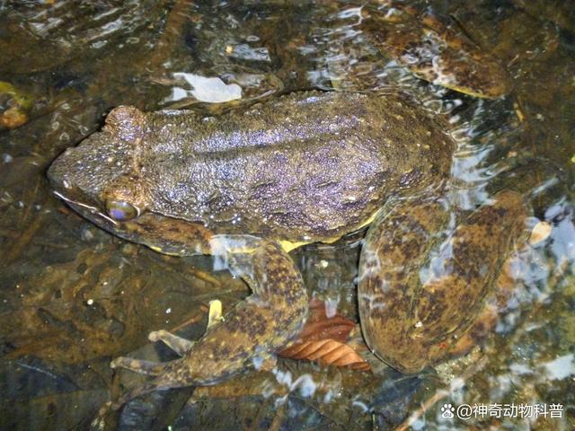 巨蛙 1、非洲巨蛙(5米) 非洲巨蛙是蛙类中的“巨无霸”,这种蛙拥有非常强的弹跳能力,可以跳到超过5米的高度。成年雄性巨蛙的体重可达3千克,身长约30厘米。它们具有三角形的头部和扁平宽阔的身体,后腿非常长,前腿相对较短而粗壮。非洲巨蛙没有声带,通常被认为是静音的,在夜间它们会单独沿着河流寻找食物。除此之外,非洲巨蛙还以其大眼睛而闻名,直径可达2.5厘米。展开后腿,它们的后腿几乎有1米长。由于其身体特征和生活环境,非洲巨蛙成为了非常适应生存的动物。