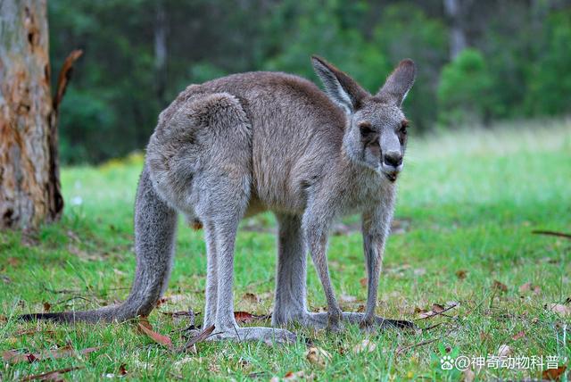 狞猫 3、袋鼠(4米) 袋鼠是长着健壮后腿的哺乳动物,它们通常以跳代跑。袋鼠用下肢跳动的速度非常快,时速可达50公里以上。因为其强大的后腿,袋鼠可以跳得非常高和远,最高可跳到4米,最远甚至可达13米,这使得它成为了跳得最高、最远的哺乳动物之一。大多数袋鼠在地面上生活,它们以跳跃的方式行动,很容易就能将其与其他动物区分开来。此外,袋鼠的尾巴又粗又长,并且长满肌肉。在袋鼠休息的时候,尾巴能够支撑起袋鼠的身体;而在袋鼠跳跃的时候,尾巴则可以帮助袋鼠跳得更快、更远。这些特点都反映了袋鼠在进化过程中适应自然环境的能力,使其成为了澳大利亚野生动物中最具标志性的物种之一。