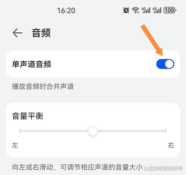 我们进入无障碍设置页面后,找到音频并点击进入页面。在这个页面中,我们可以看到 “单声道音频” 这一功能。接着将后面的开关打开,这样原本从两个声道输出的音频会合并为单声道输出,从而使声音更加集中,音量也会相应增大。