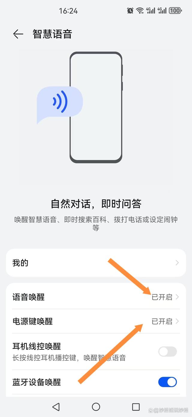 在智慧语音设置中,将语音唤醒和电源键唤醒这两个开关都打开,这样我们就可以通过语音唤醒或长按电源键来打开语音助手了。在打开语音助手后,我们可以对手机说 “清理灰尘”。