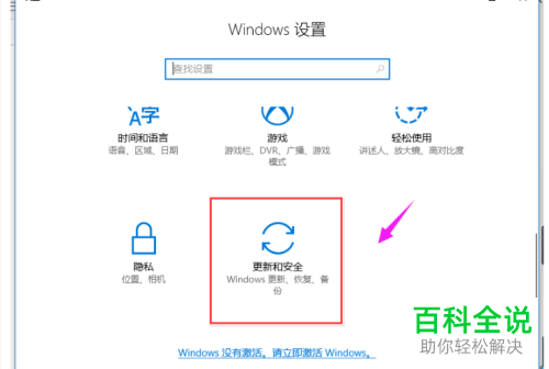2. 第二步,来到下图所示的设置页面后,点击箭头所指的更新和安全选项。