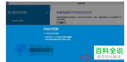 6. 第六步,在下图所示的页面中,点击右下角箭头所指的初始化选项。