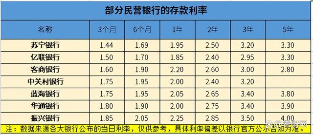 在去银行存钱时,如果想要多拿利息,通常来说去小银行存更有机会。比如民营银行的存款,利率就是比较高的。那么,目前民营银行的存款利率是多少?把钱存在民营银行是否安全呢?