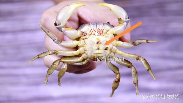 三:分公母。 我们都知道,螃蟹是分公母的,但很多朋友并不清楚该如何辨别,其实我们只要观察螃蟹的腹部,就能快速区分了。如果螃蟹的腹部呈现的是一个三角形的状态,它就是公螃蟹了。但如果腹部看起来是圆圆的,则就是母螃蟹了。