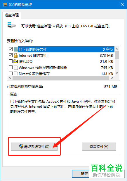 4. 接下来,在弹出的窗口中,点击左下方的“清理系统文件”按钮