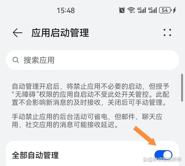 一、关闭应用自启动。 当我们打开手机设置,找到应用和服务并点开,里面的应用启动管理就呈现在眼前。这个管理界面中,手机上所有的应用默认是全部自动管理的。上方也明确提示我们,自动管理开启后,系统会自动识别应用和使用场景,禁止应用不必要的启动。 这看似智能的设置,其实暗藏玄机。虽然此配置不会影响新消息的及时接收,但那些不常用的应用在后台自动启动,会悄悄地占用我们手机的内存。想象一下,众多不常用的应用在后台“偷偷摸摸”地运行,就像一群不速之客,不仅占用了宝贵的内存空间,还在悄无声息地消耗着手机的电量。 关闭自动管理后,我们就可以手动管理这些应用了。对于那些不常用的应用,果断地关闭它们的自动管理,让它们无法在后台随意启动。当然,像常用的聊天应用,比如微信,我们还是要保持其开启状态,以确保能及时收到消息。这样,既节省了资源,又不影响我们的正常使用。