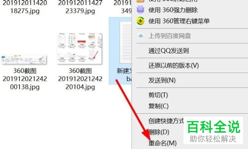 3. 第三步根据下图箭头所指,鼠标右键单击需要修改后缀名的文件。