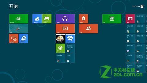 1、点击键盘上的 Win 徽标键,出现开始屏幕。参见下图: