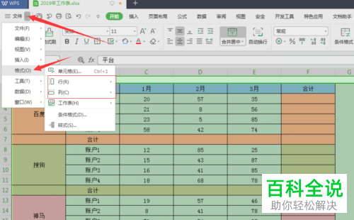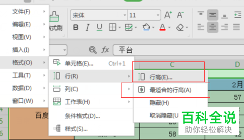 3接下来如果我们想要调整行高的话,我们就直接点击行选项,然后在弹出的扩展菜单中点击行高,或者可以选择最适合的行高让系统自动调整。