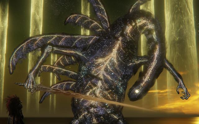 TOP3.艾尔登之兽 艾尔登之兽是Elden Ring中的最终BOSS。这个巨大的皮蛋是黄金树的化身,如果只打它的话还行,但偏偏这个BOSS前面还有个拉达岗,等你到它这里就没多少血瓶了。 从某种意义上来说难度不是一般的小,而且这个皮蛋的速度非常快,老是会拉开距离跟你远程放风筝,相当烦人!