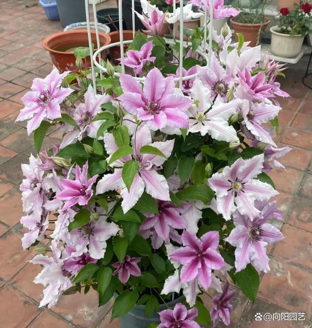 铁线莲生长速度快,开花数量多,在生长期间对水分的需求也就更多,建议大家可以在种植铁进来的花盆底部加上一个大一点的接水盘,每次浇水的时候彻底的把土壤浇透,同时把花盆底部的接水盆装满水,以此来保持水分的供给。