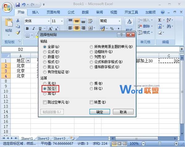 ⑦然后单击菜单栏--开始--选择性粘贴,勾选加,确定。(www.ws46.cOm)