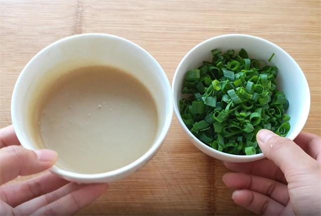 2.接下来我们来准备葱花和油酥,这个油酥就是用热油加面粉加盐调制成的。