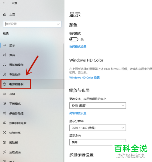 2. 然后我们点击左侧栏中的【电源和睡眠】选项。