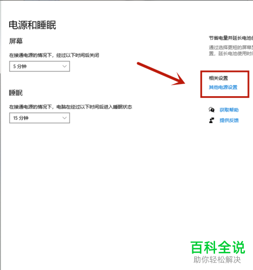 3. 在对应的右侧栏中点击蓝色字体的【其他电源设置】选项。