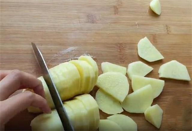 1.今天和大家分享一个用土豆做的小零食,首先我们准备土豆约300克,洗净去皮切成薄片,上锅蒸熟。