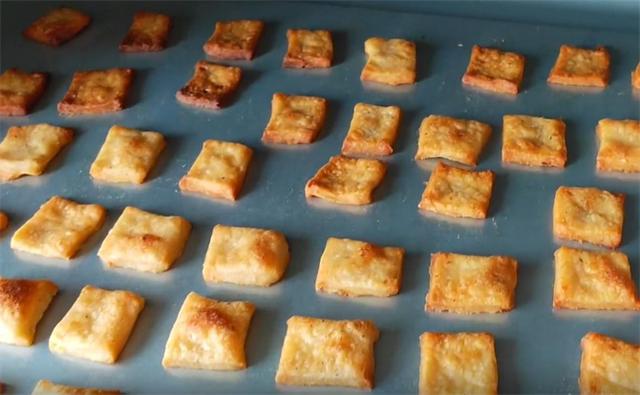 5.和大家分享的是两种吃法,一个是烤箱烤的,另外一个是油炸,如果用烤箱烤的话,烤箱预热五分钟,放入中层,上下火170度烤20分钟,表皮金黄酥脆即可出锅,出锅以后晾凉,这个的口感就类似于乐吧薯片的口感,酥脆咸香。