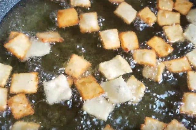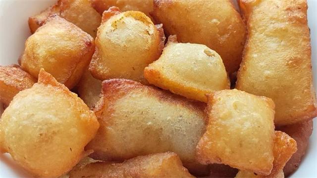 6.如果用油炸的话,油温五成热下入,用最小火慢炸,炸至表皮金黄酥脆出锅,用油炸的,会个个鼓起大泡,吃起来更加酥脆。