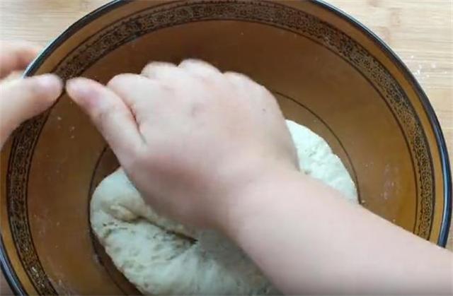 3.分次加入约100到130克的面粉,边倒边搅拌,最后下手揉成柔软的面团。由于里面我们放入了油,这个揉起来是不会粘手的。