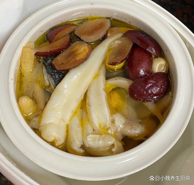 转眼就到了夏季的中期,每年的夏天都非常炎热,尤其是过了夏至以后,白天的时间最长,黑夜的时间非常短,很多地方五点钟就天晴了。到了6月中下旬,炎热的天气持续时间很长,很多人容易出汗,身体非常疲倦,出汗就会带走营养,让人气色非常差,许多女性出现贫血的状况。南方人特别注重养生,有着“夏季喝汤,不用郎中开药方”的说法,乌鸡是高蛋白和高营养的食材,搭配几种食材煲汤,汤品巨鲜美,喝起来一点都不油腻。今天分享一款特别鲜美的汤品——沙参莲子鱼胶乌鸡汤,经过小火慢炖,营养都在汤里,对人的身体有益处。贫血最怕喝“这汤”,六月要多喝这汤,补血安神,脸色更加红润!  【沙参莲子鱼胶乌鸡汤的详细做法】 挑选一些食材:选购优质干莲子30克(干莲子是莲蓬米最老的时候,要选择大小适中,闻起来有淡淡香味,莲子泡发后可以煮粥或煲汤,多吃莲子对失眠有益处),玉竹20克左右,沙参25克左右(也可以选择红参或党参,都是补气血的药材,许多南方人用来煲汤,为身体补充元气,气色越来越好),鱼胶30克左右(鱼胶又叫作鱼鳔,是高胶原蛋白的食材,食用方法有很多,一般用来煲汤和煮粥,在炖汤时,鱼胶的加入能使汤品更加醇厚,口感更加顺滑),半只新鲜乌鸡,8个大红枣,生姜和香葱少许,冷水和温水若干,百合10克,食盐若干,一丢丢胡椒粉,其他。 详细制作顺序: 第一步:提前选购好沙参,玉竹,莲子,鱼胶和乌鸡等食材,先把沙参和玉竹用清水洗干净,生姜切成一些片状,香葱洗净打成葱结。第二步:将鱼胶用温水泡发,百合提前温水泡发,撕掉一层白色薄膜,干莲子用冷水泡发几个小时,一定要去除莲子心,备用。第三步:将几个红枣洗干净,去核后切成小块,乌鸡让商贩宰杀好,取出内脏洗干净,剁成大小相同的块状。第四步:先把乌鸡用清水洗净,锅中加上适量清水,倒入乌鸡块,放入姜片和葱段,加上少许料酒去腥,大火煮几分钟,去掉一层油腻的浮沫,温水冲洗干净,这样逼出血腥物质。 第五步:准备好煲汤的容器,分别放入乌鸡块,玉竹,党参,鱼胶,红枣,百合和莲子,还可以放入姜片,多加一些清水,调到大火煮开。 第六步:然后转小火炖45分钟,时间要久一下,让食材的营养都融入汤品里,鸡肉煮至软烂,调入食盐调味。 第七步:尝一尝咸淡,适当调味以后,加上胡椒粉和枸杞子,焖煮一小会儿,这款沙参莲子鱼胶乌鸡汤就烹饪完成了。 (www.Ws46.com) 沙参莲子鱼胶乌鸡汤是一款补血补气的汤品,选用新鲜乌鸡,沙参,莲子,鱼胶等食材炖煮而成,乌鸡比老母鸡更加滋补,炖汤是绝佳搭配,汤品鲜美好喝,滋补气血,补血安神,女性要多喝它,早食早受益。 网友们,你们是否喝过这款沙参莲子鱼胶乌鸡汤吗?(文中的配图都出自网络)