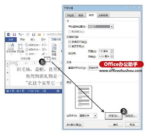 图1 “页面设置”对话框 注意 在“页面设置”组中单击“行号”按钮
