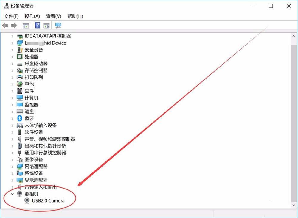 5、设备管理器窗口中,展开照相机选项,会显示摄像头的驱动型号。