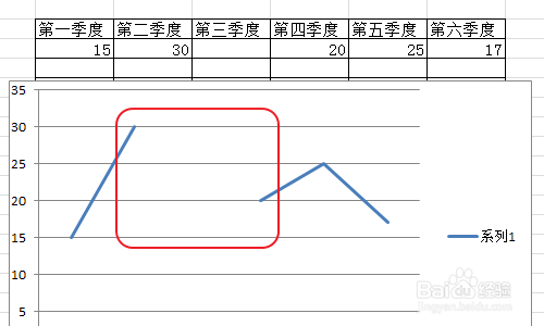 方法与步骤如下: 1 如下图所示的折线图,由于源数据中存在空格的数据,造成此处的折线图会出现数据断裂,这是因为第3季度没有数据造成的。接下来我们尝试这消除这个断裂