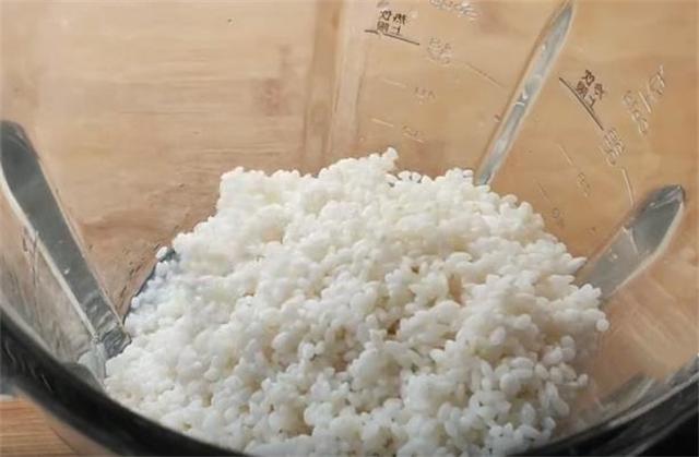 2.然后控干水分倒入料理机中,大米最好选用新米,如果是陈米的话,做出的米糕口感不太好。