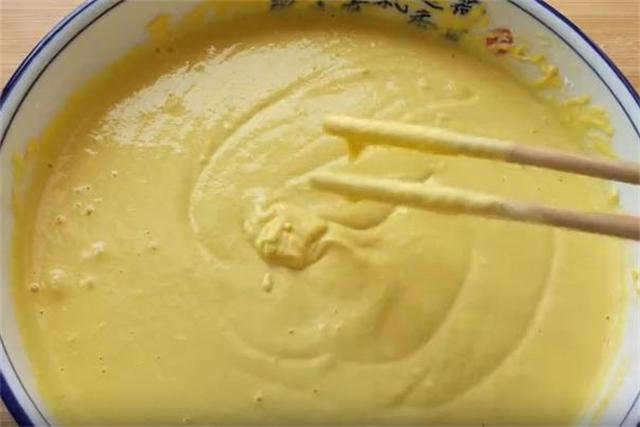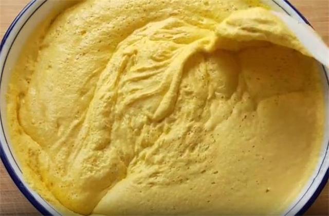 5.接下来做米糕的第二个要点,就是发好的面糊一定要多搅动,排净里面的气泡,这样做一是防止蒸制的时候塌陷,第二点就是排尽气泡之后,二次醒发之后气孔会更加均匀细腻。