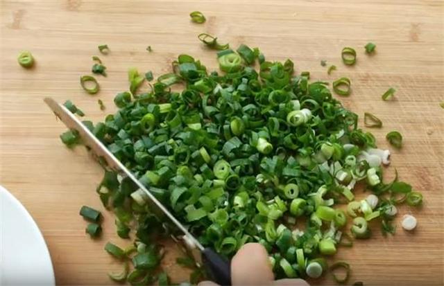 2.为了早上更节约时间,我们可以提前准备一些葱花,把它切碎放冰箱冷藏保存。
