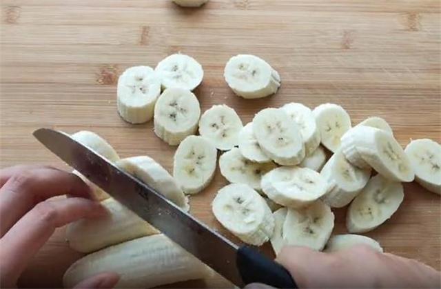 2.接下来我们把香蕉去皮,切成薄片备用。