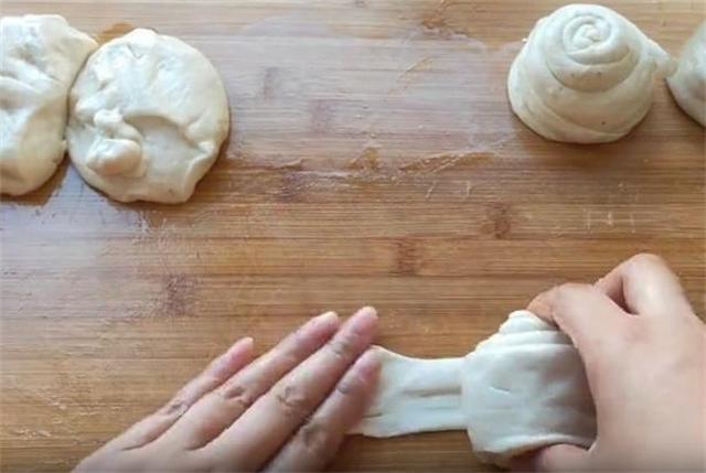 4.早起之后把醒好的面从冰箱拿出,最切记的一点就是一定不要揉,就直接把它抻成长条,为的就是防止它起筋,然后分成7到8份,所谓起筋就是我们在擀面的时候,它会很快的回缩,如果是这种状态下做出的饼肯定会非常的硬。